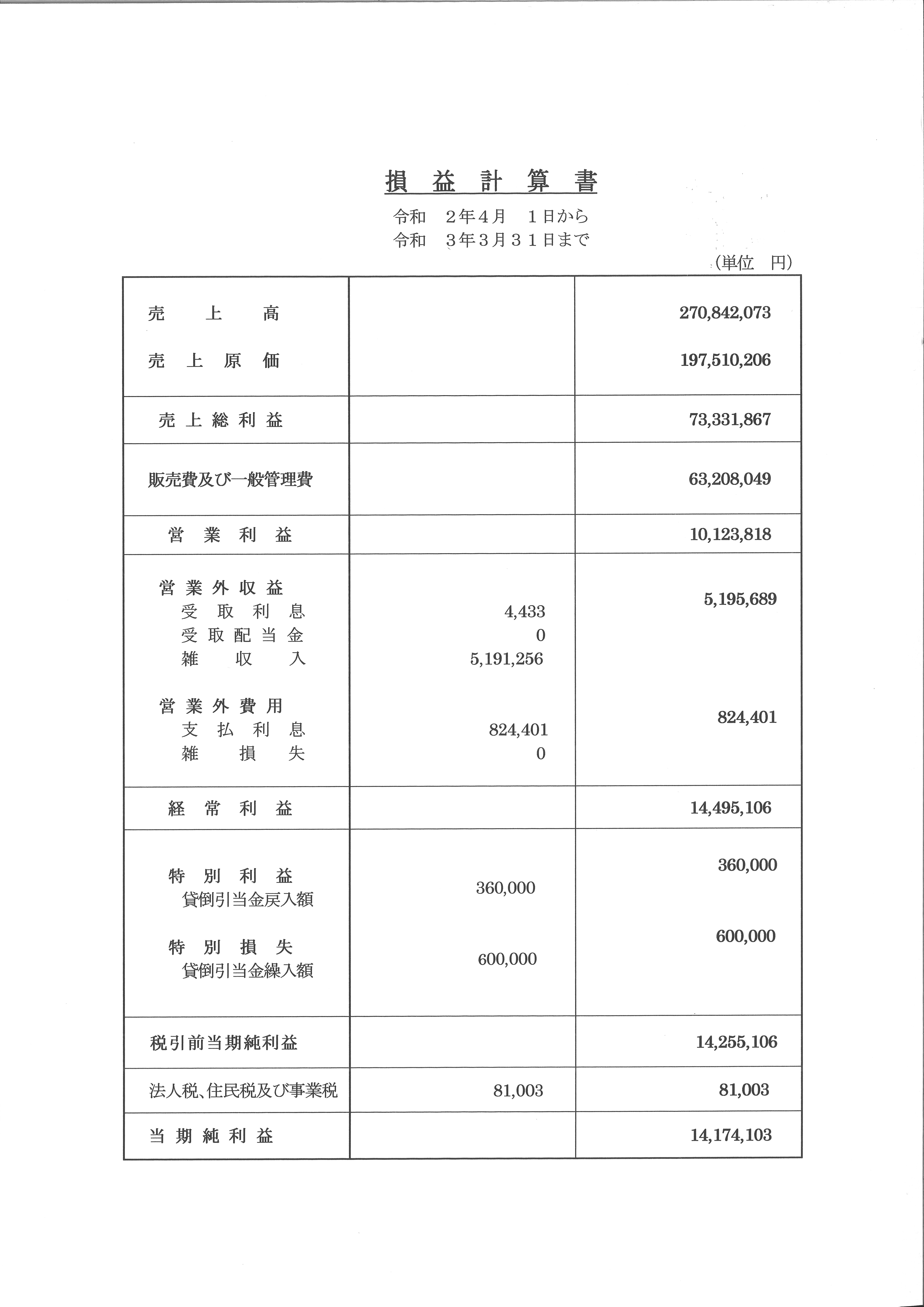 2021年6月22日 令和3年3月期(第54期)決算 確定致しました。